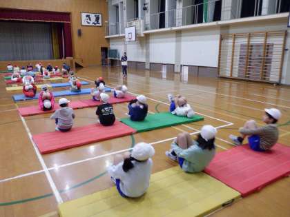 体育科でマット運動の学習をはじめました。活動の場づくりや入念な準備運動の後、これまでに学習した技を確かめました。