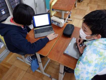 総合的な学習の時間で、環境問題について調べています。地球温暖化やごみ問題、水質汚染、赤潮、森林伐採などさまざまな問題が身の回りにあることを知りました。各自が興味をもった環境問題について調べて分かったことの交流もしました。