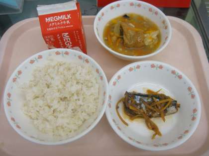 今日の献立は,「麦ごはん・牛乳・さんまのかわり煮・厚揚げの野菜あんかけ」でした。