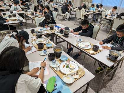 夕食をおいしくいただいた後は、同じ会場で今日1日の振り返りをします。