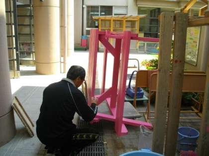 そこで本校管理用務員が全部にやすりがけをし,ペンキをぬりました。
