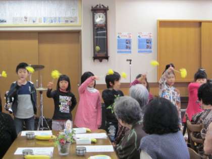 4月21日 春の昼食会で歌と踊りを披露(3年生)