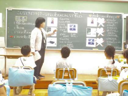 6月8日(土)の2〜3校時に、休日参観を行いました。2校時の学活では、「こんなときどうする?〜なかよく使うために、みんなで考えよう〜」の学習を行いました。自分たちの生活に登場するスマートフォン、タブレットPC、パソコン、ゲーム機を提示し、どのような使い方ができるのかを発表し合った後に、担任たちが作った劇を見ながら、これらの機器となかよくなる方法をみんなで考えました。
