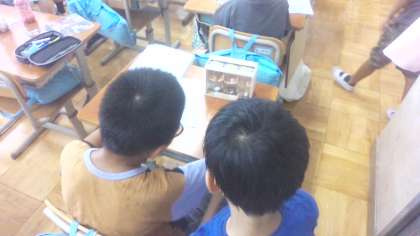 夏休みに取り組んだ自由研究や作品をみんなで交流し合いました。絵や工作、虫や生き物の研究など、夏休みにしかできないことに取り組んでいました。みんな、友達の作品や研究に興味津々。工夫したことや苦労したこと、見てほしいところなどを熱心に説明していました。