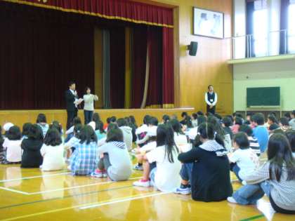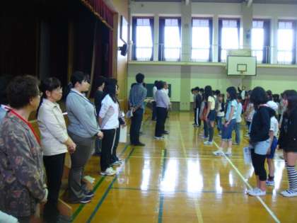 中間休みに体育館で部活動の開講式を行いました。 指導にあたっては,地域の方々をはじめ,たくさんの方々にお世話になります。どうぞよろしくお願いいたします。