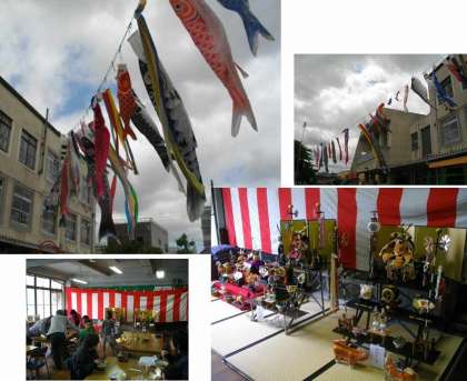 小学校の東側には,たくさんのこいのぼりが気持ちよさそうに泳いでいます。また,保健室には,学区内の皆様方から提供(貸出)していただいた兜が並んでいます。明日,13日(日)も10時から15時まで開催されており,折り紙かぶとをつくるイベント(午前10時,午後1時の2回)も行われるそうです。