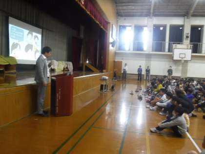 10月31日(木)1時間目に、全校で人権集会を行いました。校長先生が「ミカちゃんのひだりて」という絵本の読み聞かせをしてくださいました。「自分のことを分かってもらえたとき、どんな気持ちになりますか?」「友達のことをよく知ると、どんないいことがあるのかな?」ということを聞かれ、みんなで考えました。「分かってもらえるとうれしい」「よく知ると、その人ともっと仲良くなれる」と話してくれた人もいました。これから1か月間、校内の友達のいいところをみつける「いいところみつけ」が始まります。どんないいところが見つかるでしょうか。どんな変化があるでしょうか。楽しみです。