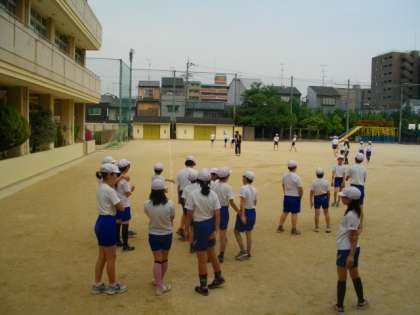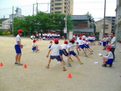1,2,3年生が遠足に行っている間,4,5,6年生は運動場で体力テストを行いました。ソフトボール投げや反復横とび,幅跳びなどを行いました。
