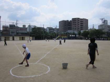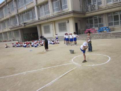 今日は1・2・3年生の子どもたちがソフトボール投げに取り組みました。 子どもたちは,カラッと晴れた青空の下で,掌には少し大きめのソフトボールを一生懸命投げていました。順番を待っている友達からは応援の声がとんでいました。