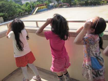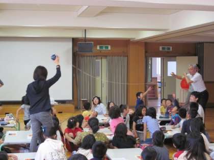 講師は,本校総合育成支援員の吉田秀樹先生です。学習ではまず,写真や具体物を使って,日食のしくみを楽しく学習しました。その後,自分たちで太陽観察用のメガネをつくり,実際に太陽を観察しました。低学年の子どもたちは,初めて見る太陽の様子に「すごい!」と大きな声をあげて喜んでいました。とてもいい体験ができたと思います。