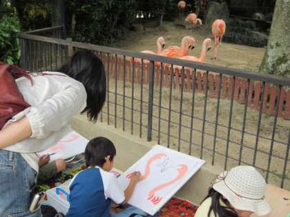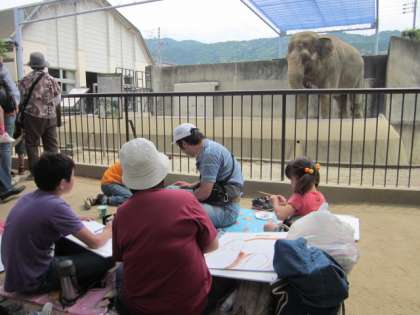 リニューアルされた動物園で子どもたちは思い思いの絵を描いていました。家族で来られた方々も楽しんでおられました。それぞれに楽しい時間を過ごせたと思います。お世話になった地域の方々,どうもありがとうございました。