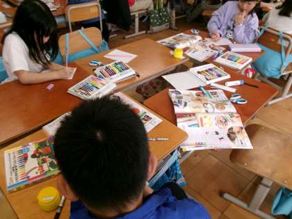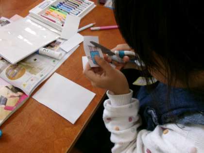 図画工作で、「すきまちゃんの すきな すきま」の学習をしました。