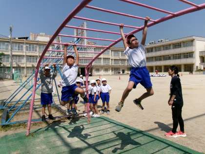 手と足のバランスをうまく使ってうんていをします。