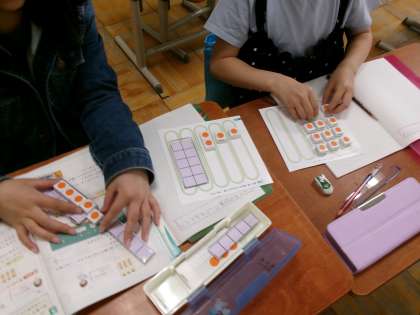 数図ブロックを実際に動かしながら、考え方を磨いています。