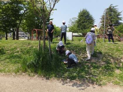今週、理科の学習で春の生き物を見つけるために二条公園に行きました。