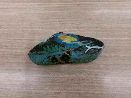 連休中に出かけた先で、自然に触れ合い、見つけたものを石にきれいにペイントしました。