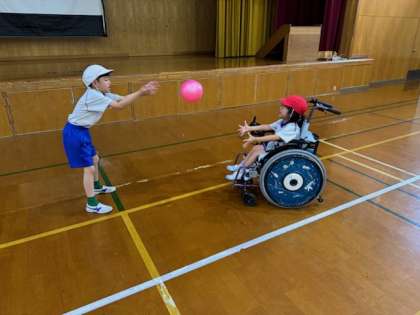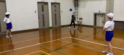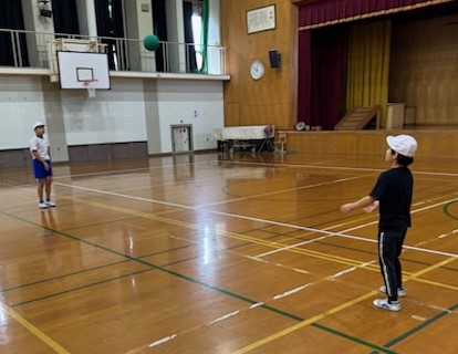 わかたけ学級の体育では、ボール投げ運動をしました。