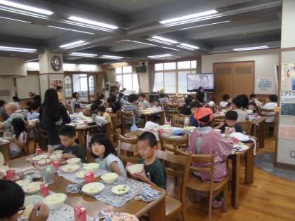 今年から交流学年でのランチルーム給食を再開しました。教室で食べる給食とはランチルームで食べる給食はいつもよりおいしく感じるようです。学年の垣根を越えて遊んだり給食を食べたりみんなが楽しく過ごせる工夫をこれからも実施していきたいと思います。