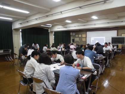 午後からは学力向上研修として全国学力学習状況調査の分析および2学期からの帯時間や宿題等の基礎基本の定着についてのグループを交流を行いました。