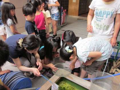 5年生の理科では,「生命のつながり」という学習のめだかを育てて,観察をしています。今日は,学校で飼っているクロメダカもいっしょに観察しました。