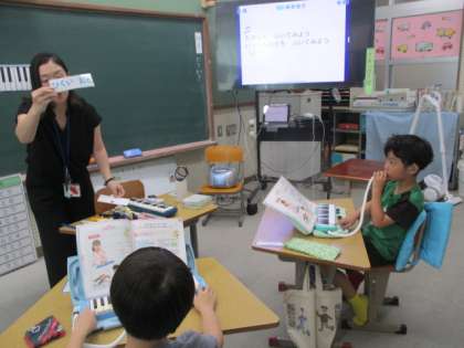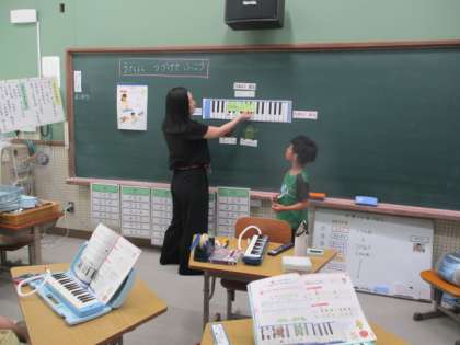 今日の音楽の授業では「強い音」「弱い音」「高い音」「低い音」を意識しながら、鍵盤ハーモニカの音を演奏しました。また今日は草の芽学級の学習方法を知ってもらうため、校内の先生を対象に公開しました。