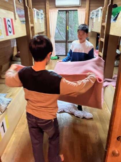 最終日の朝を迎えました。部屋の片付けを済ませて朝の集いに向かいます。