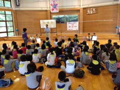 楽しかったみさきの家での活動もいよいよ最後になりました。退所式では校歌を歌い,旗をおろしました。9時30分にはみさきの家を出発して志摩マリンランドに向かいます。