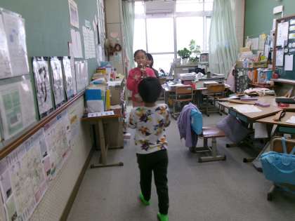 草の芽の教室で、「アチャパチャノチャ」を吹きながら行進して見せてくれました。