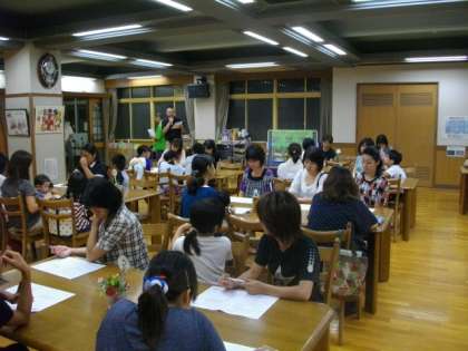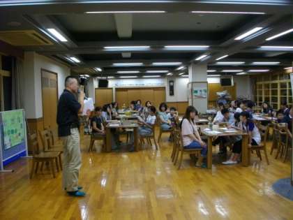 ランチルームで,おやじの会主催「学校キャンプ」の説明会を行いました。今年の夕食はカレーです。また,おやじの会のメンバーによるキャンドルファイヤーや恒例のきもだめしが予定されています。