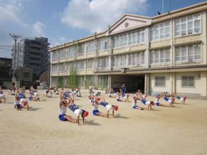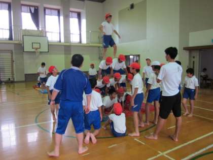 今日の1時間目の組体操の練習で,6年生は初めて運動場での演技に臨みました。裸足で運動場を駆け回ったり,技を組んだりして,足が痛かったはずですが,そのことをだれも口にすることはありませんでした。一生懸命練習している様子は,さすが最高学年という感じです。2時間目は体育館で,10人技の練習をしました。だんだんとやり方がわかってきたようで,たくさんのグループが成功させていました。