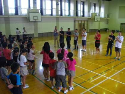 閉会式の後,子どもたちから「おやじの会のみなさんにお礼が言いたい。」という声があがり,みんなで整列してお礼をいいました。その後,記念撮影をしました。