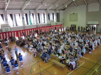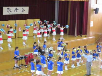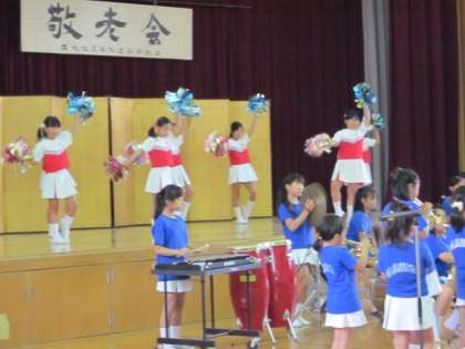 地域の敬老会に,本校の金管マーチングバンドが出演しました。気賀先生の指揮のもと,「マリンズマーチ」「アップルパイマーチ」「スネイク」の3曲を披露しました。 楽しい演奏やかわいい踊りに,会場からたくさんの拍手をいただきました。