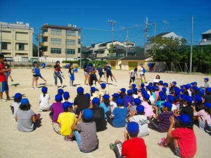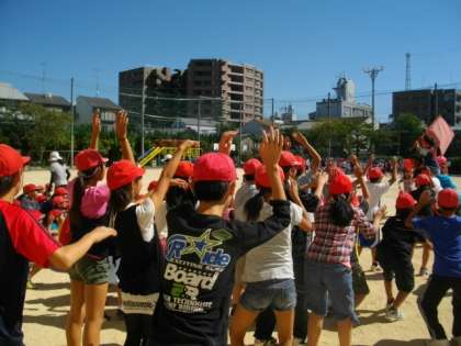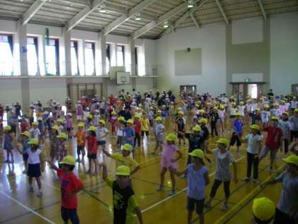 29日の運動会に向けて,赤白青黄組とも盛り上がってきています。今日のフリータイムは,赤・青組が外で応援練習をしました。白・黄組は体育館で全校体操「にじょっこダイヤモンド」の練習をしました。