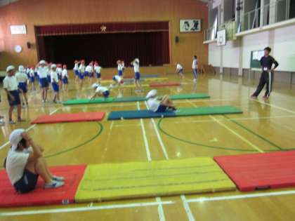 体育館では1組と2組がマット運動に取り組みました。 自分の力に合わせて,「開脚前転」や「ロンダード」など,いろいろな技に挑戦します。