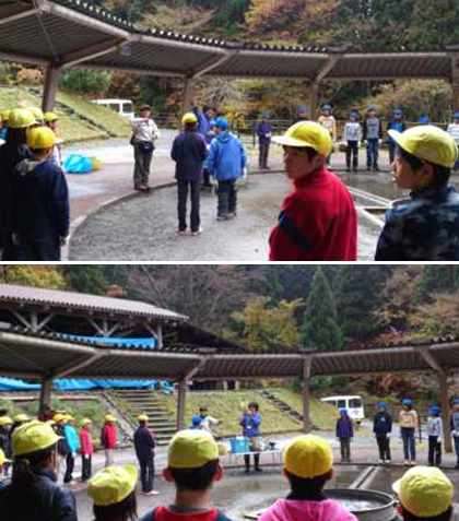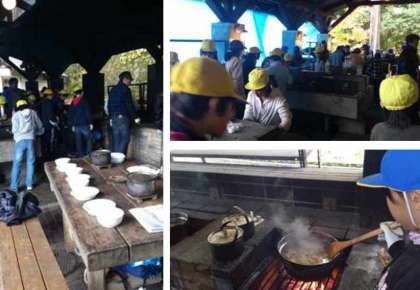 晴れ間がみえてきました。野外炊事の様子です。
