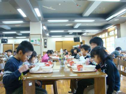 ★今週で1−1と4−2のなかよし給食は,終わりです。1年生は,教室で食べるより,ずっとはやく食べられたそうです。ランチルームの環境のおかげでしょうか?4年生と一緒に食べているからでしょうか?・・・