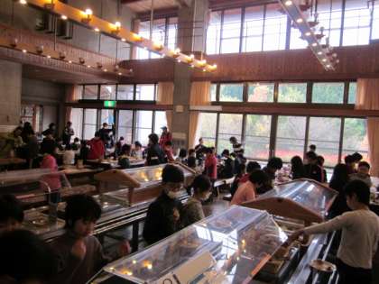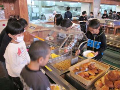 3日目の朝食の様子です。バイキング形式の食事の仕方にもすっかり慣れた5年生。それぞれにおいしい朝食を選んでいました。