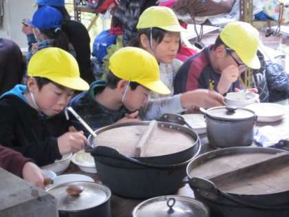 できあがったお料理をしあわせそうに食べる子どもたちの様子をご覧ください。