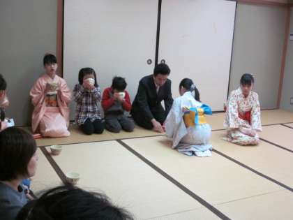 今日の午前中,いつも茶道部を指導していただいている地域の方々にお世話になり,土曜学習「おひなまつり茶会」を行いました。 みんな,どきどきしながらも2月23日の「茶道入門教室」で学んだことを生かして,お茶をいただいていました。