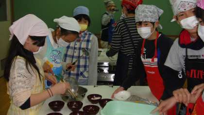 班ごとに担任と栄養教諭で出来上がったすまし汁の試食もしました。