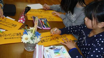 「栄養黒板をがんばって書きました。みんなにわかりやすい字で書くように心がけました。給食目標では,その季節で思いうかぶような絵をきれいに書きました。給食集会では,どのようにしたら,みんなにわかりやすいかを考え,行動しました。」