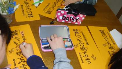 給食委員会では,3月の給食目標を書いたり,1年間のふりかえりを書いたりしました。