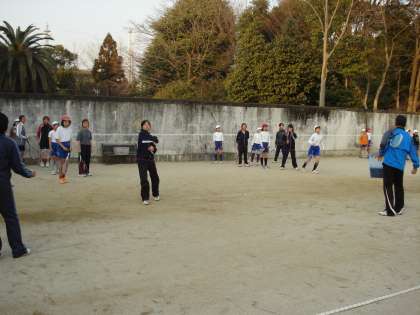 今日は,二条中学校に行って,中学生といっしょに練習をしました。子どもたちは初めての中学校での練習とあって,緊張していました。でも,中学生はとてもやさしく,小学生の練習の相手になってくれたので,練習が終わる頃には,笑顔がいっぱい。子どもたちはとても楽しかったようです。