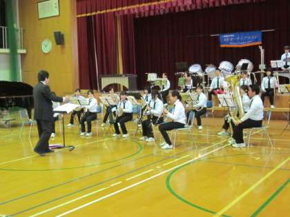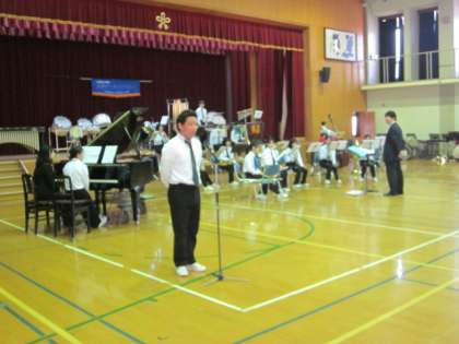 演奏会では,二条中学校やコリーズの演奏がありました。 コリーズは,金管マーチングバンドの指導をしてくださっている気賀先生が指揮をされている金管バンドです。
