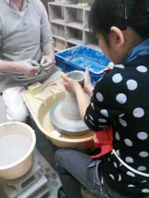 品野陶磁器センターでは,陶器の作品作りに取り組みました。