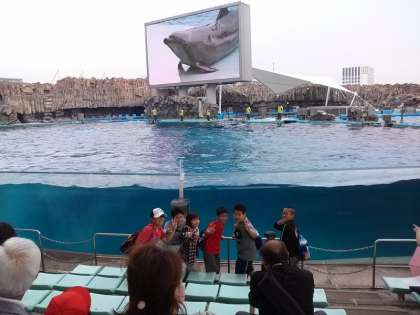 まもなく,みんなが楽しみにしているイルカショーが始まります。