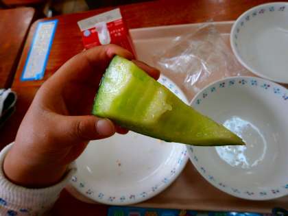 「きょうのアムスメロンがとてもおいしかったので,また,だしてください。」