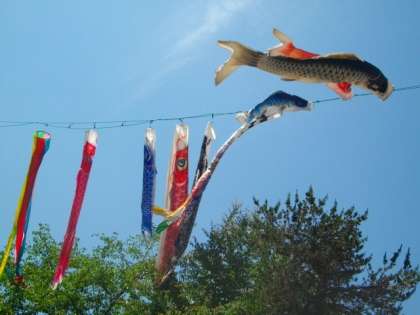 2日目の今日はとてもよい天気になり,こいのぼりが元気よく泳いでいました。