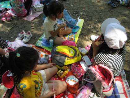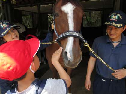平安騎馬隊にて馬とふれ合った後,宝ケ池公園で遊具で遊んだり,楽しみにしていたお弁当を食べたりしました。