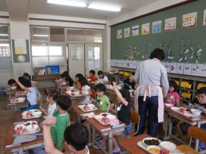 「今日のこんだてにでたフルーツかんてんがひさしぶりにたべて,やわらかくておいしかったです。また,食べたいです。」 ・・・・・6年生の感想から